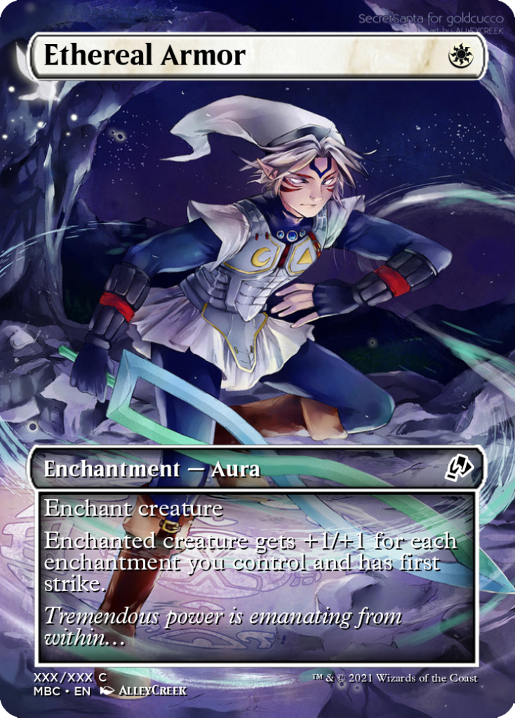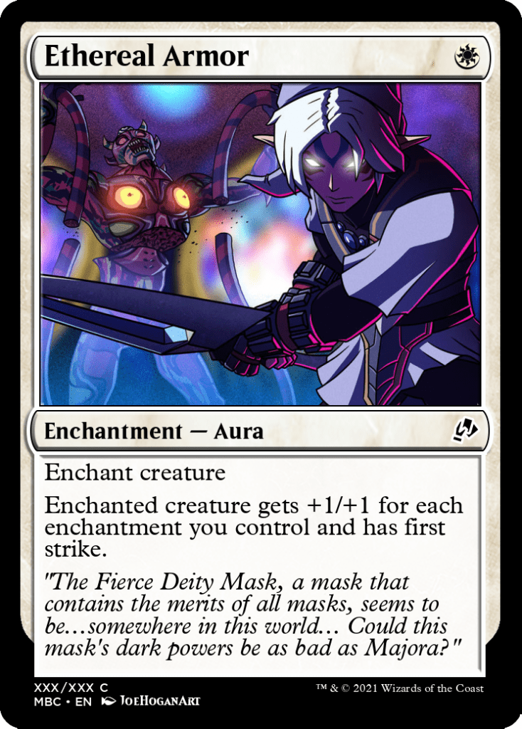 The full deck list can be found here. I had a great time with the mental exercise of building this deck, and I really hope it makes a splash at my next Commander night! Once I’ve played with it a few times, I might post again with an updated list. Evidently, I’m not the only one thinking The Legend of Zelda: Majora’s Mask has a home in Magic the Gathering; I found two alters for Ethereal Armor as the Fierce Deity mask as I was building this list! I didn’t cover the mana base, but it’s fairly standard for the colors we’re running, if tuned slightly down. I can’t overstate how scary Estrid is at a Commander table, so maybe show a little restraint if you’re able to go infinite. Are there any creative choices I made with the theme you disagreed with, or cards that I overlooked that should be in this deck? I’d love to read your thoughts in the comments.