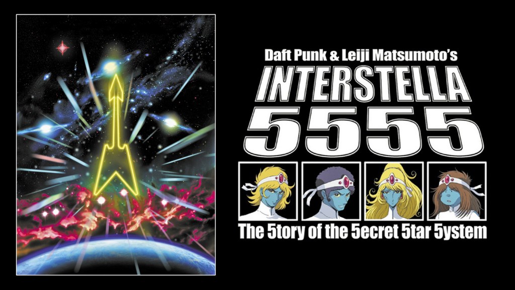 Interstella 5555 is a collaboration between Japanese anime producer Toei Animation and French electronic musical duo Daft Punk. It should come as no surprise to anyone familiar with the anime industry that the project was initiated by Daft Punk, who planned to make a feature film to visualize their album Discovery (2001). Originally, the film was to be live action, but eventually the project transitioned to animation, and after considering several styles of animation, landed on Leiji Matsumoto’s classic anime aesthetic. The marriage of science fiction with the entertainment industry was written by Daft Punk, who then brought the script to Tokyo in the summer of 2000 in the hopes of courting an animation producer. They found a willing collaborator in Matsumoto himself, who saw a spiritual kinship with this project because his animations were originally inspired by French film makers. With Leiji Matsumoto on board as the visual supervisor, a team including Shinji Shimizu as lead producer and Kazuhisa Takenouchi as director quickly came together. The production process lasted about three years, during which Daft Punk commuted to Tokyo on a monthly basis. The film was completed in 2003, and was divided into four parts that were shown on a special block of Cartoon Network’s “Toonami Midnight Run.” Sadly, since then the OVA has become somewhat difficult to find, only seeing one DVD and Blu-ray release, and being streamable on Amazon Prime and Youtube via Quello Concerts.